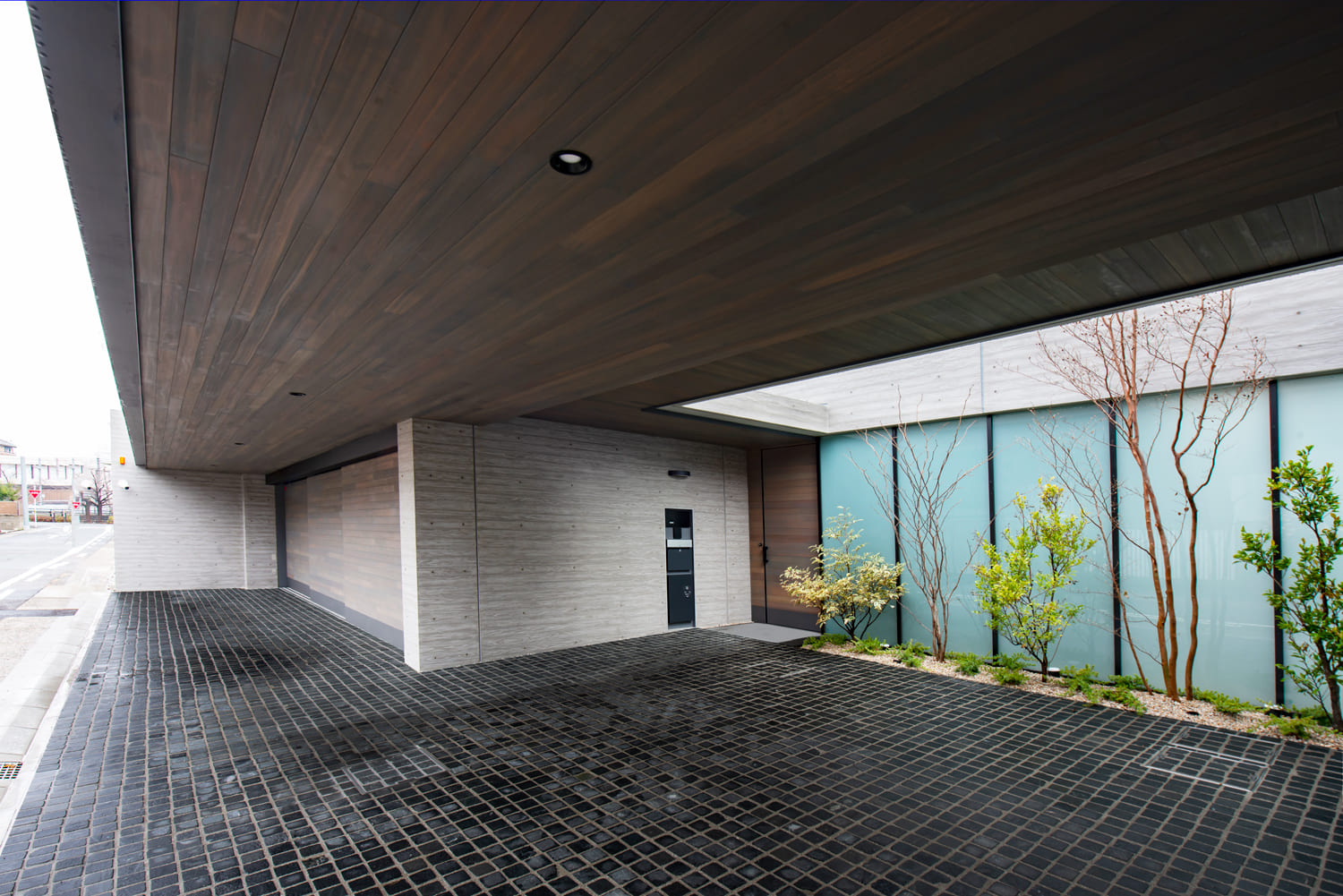 重厚なコンクリートの壁が、外の世界の喧騒と視線を完全に遮断します。