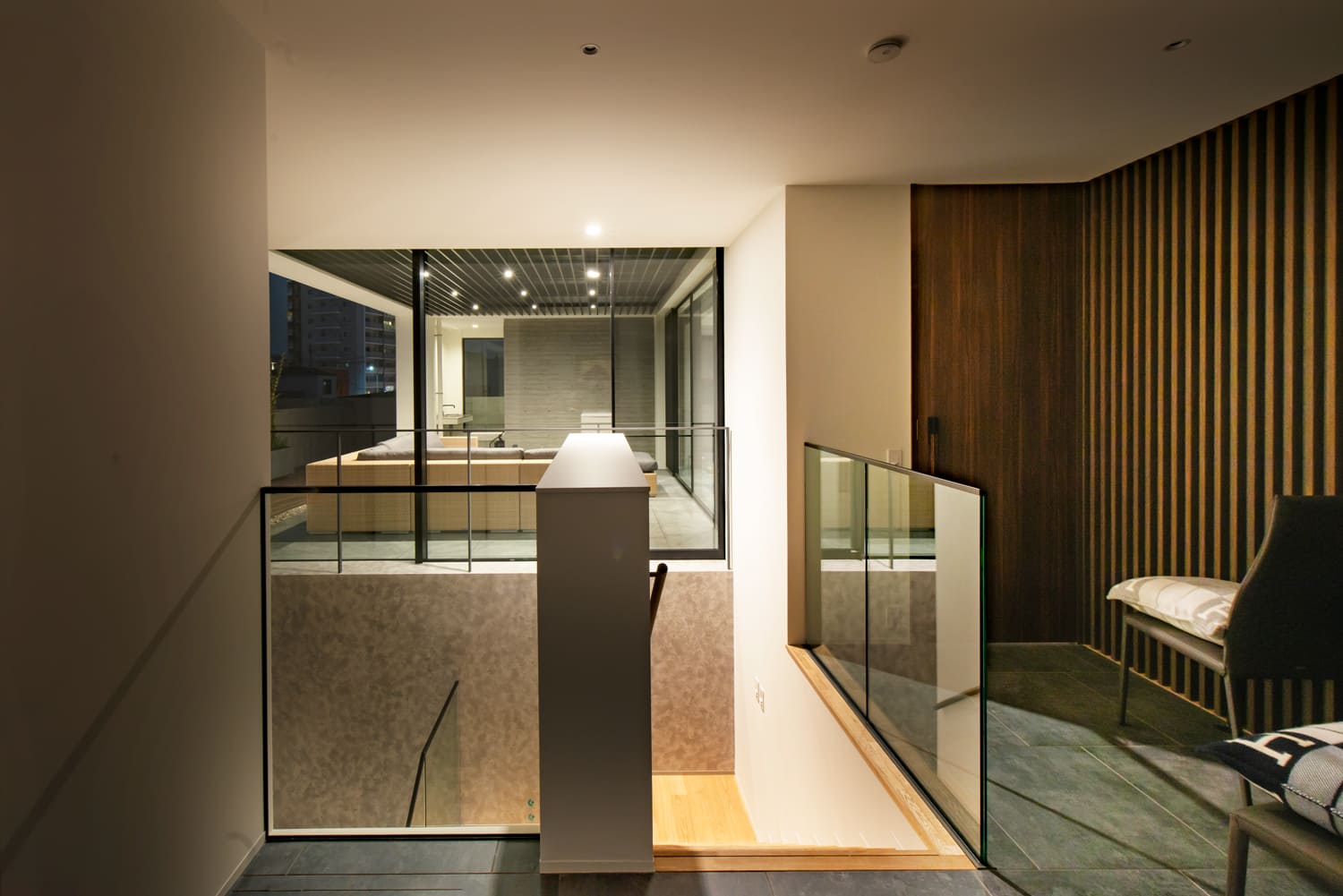 壁一面を占める巨大な窓が、眼下に広がる街の夜景を、息をのむような「生きたアート」として室内に取り込みます。