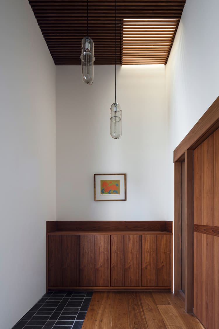 【玄関】『ただいま』と、心が落ち着く場所へ。木の温もりが迎える、我が家の序章。