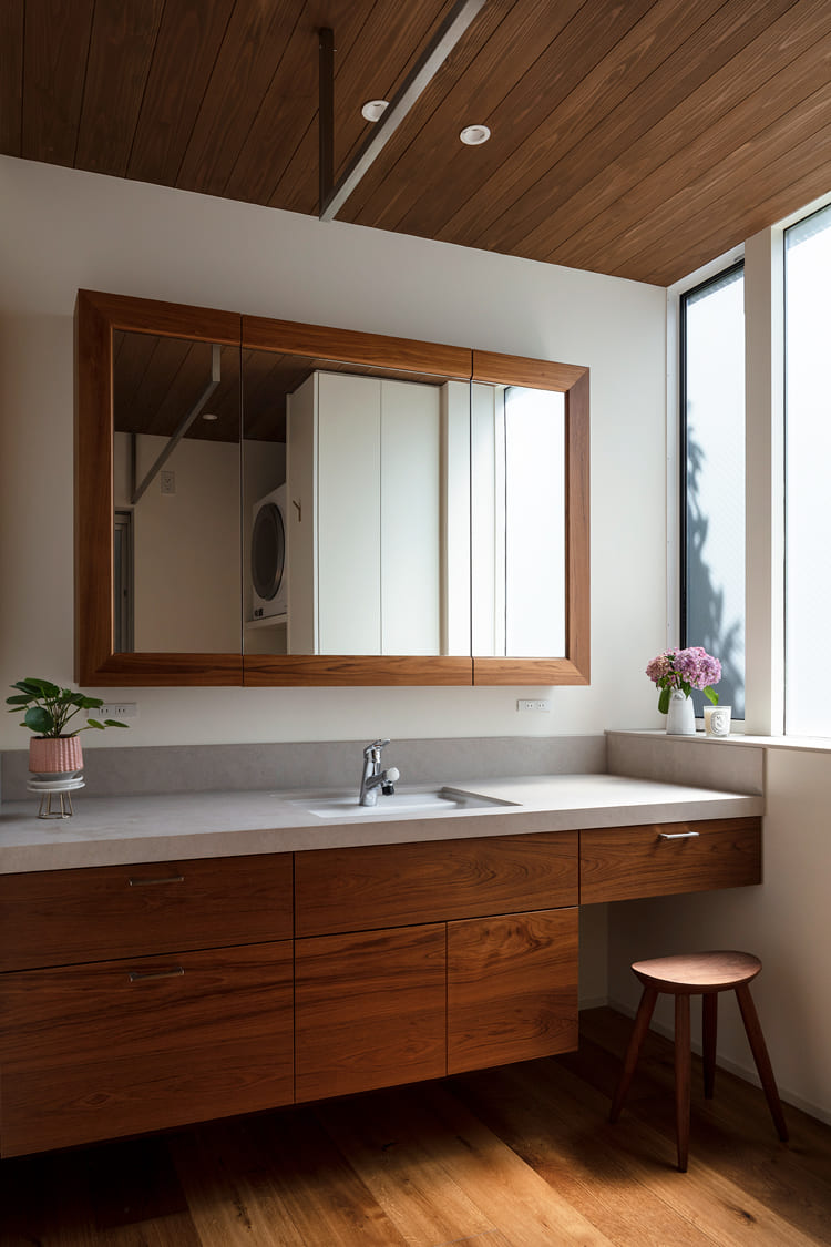 【洗面台】朝の光が心地よい、上質な空間。毎日を豊かにする、造作の洗面化粧台。