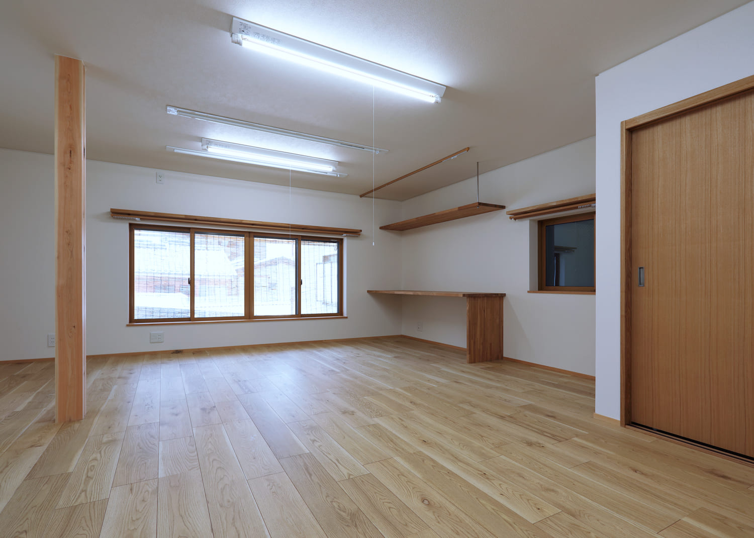治療を行うための部屋は、清潔感と、木の温もりに満ちた、明るく広々とした空間です。訪れる患者様が、少しでもリラックスして施術を受けられるように、という想いを込めて、壁や床には、目に優しいナチュラルな素材を選びました。心と体を癒す仕事に、ふさわしい舞台です。