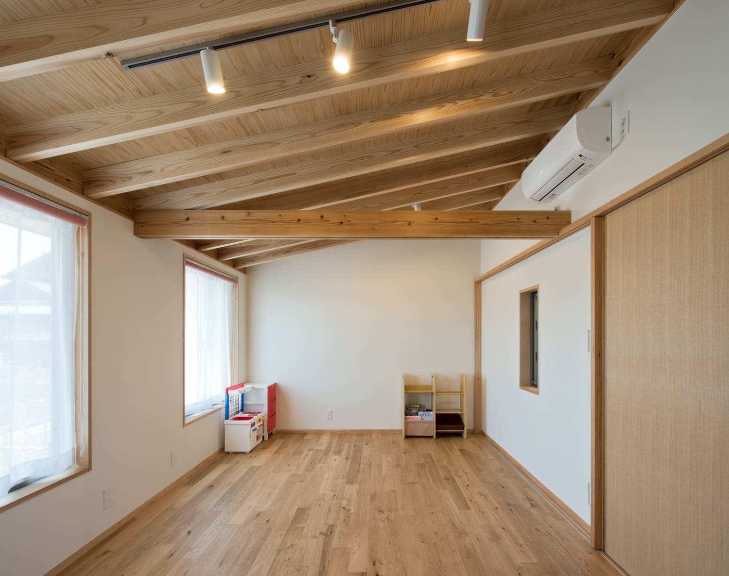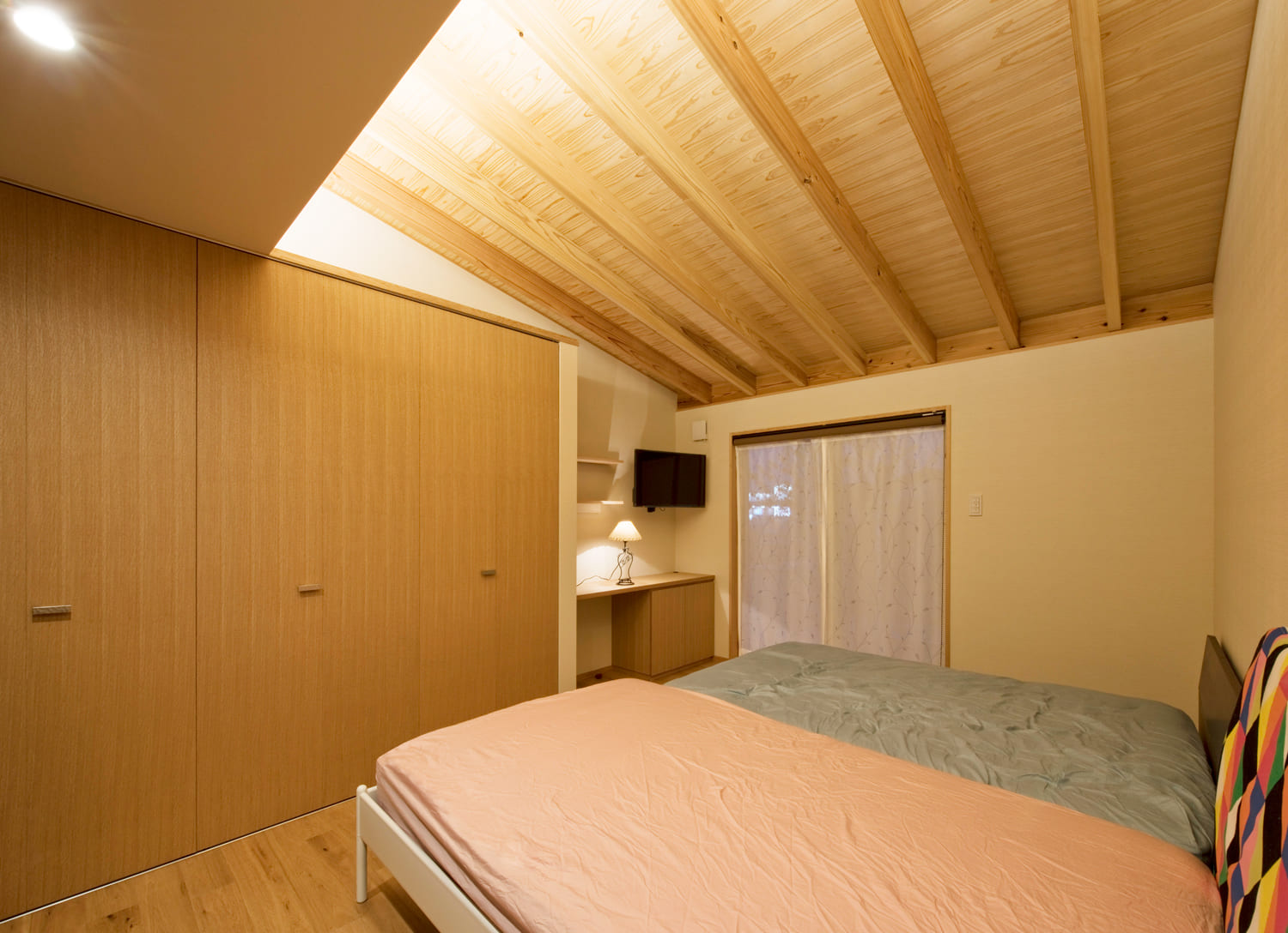 【寝室】木の天井に包まれて、穏やかな眠りへ。毎日が、リゾートのような心地よさ。