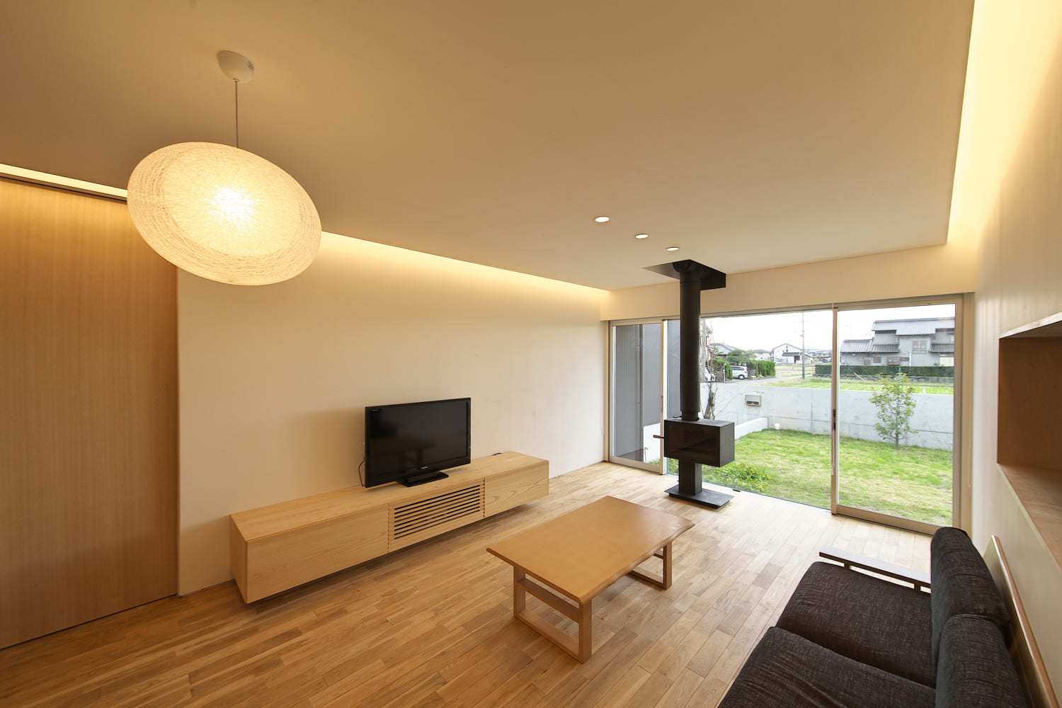 【リビング】外観からは、想像もつかない。光と、木の温もりに満ちた、安らぎの空間。