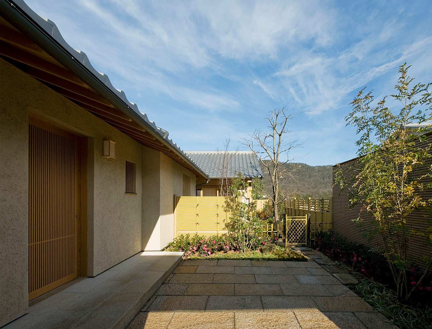 多様な素材を組み合わせた豊かな表情が、周囲の自然と美しく調和し、訪れる人の心に期待感を抱かせます。
